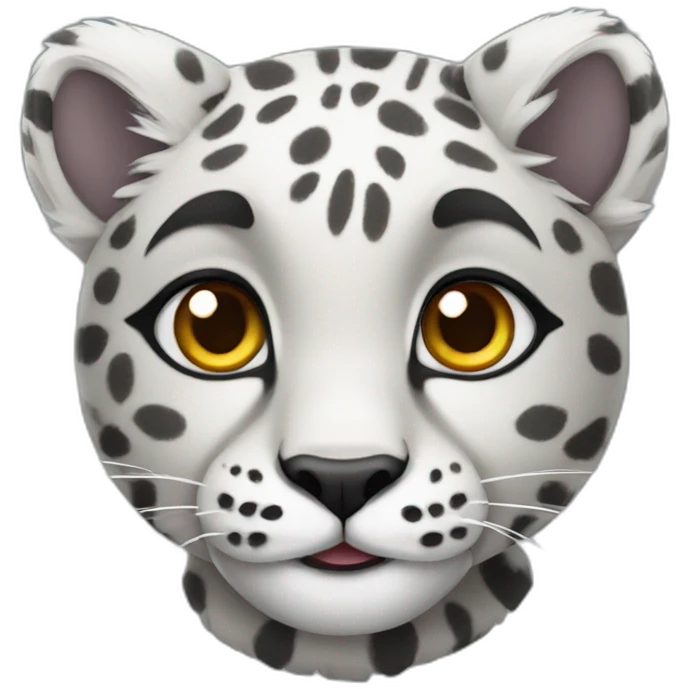 Cute kawai adorable chibi baby silvery white snow leopard emoji