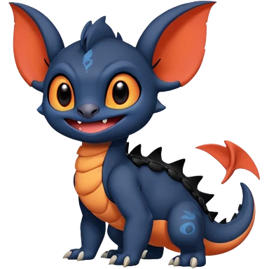 Cute adorable Stitch-Litten-Salandit-Noibat-Toothless-fusion, full body emoji