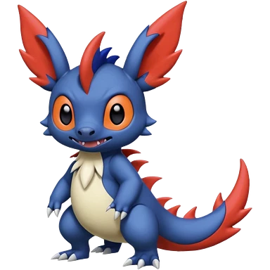 Cute adorable Stitch-Salandit-Noibat-Zangoose-fusion, full body emoji