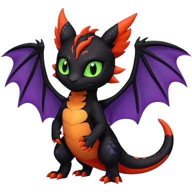 Cute adorable Noivern-Litten-Salandit-Noibat-Toothless-fusion, full body emoji