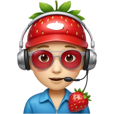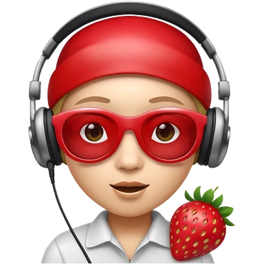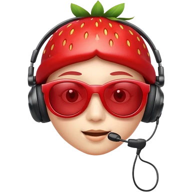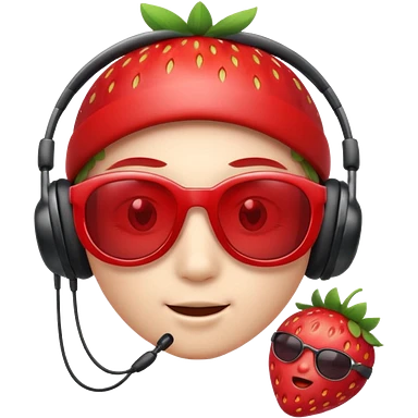 Cute strawberry wearing headset and shades emoji | AI Emoji Generator