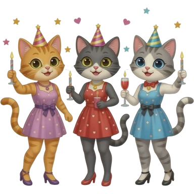 six male cats celebrating at a birthday party, festive, colorful, playful, each cat with a unique party accessory, emoji style emoji
