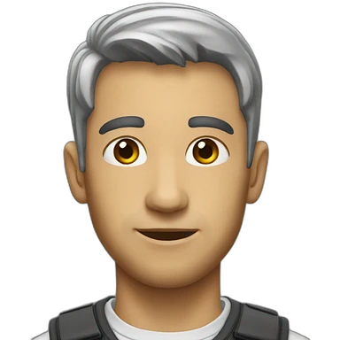 49 y-o soccer player, short hair, small central crest "salt and pepper", dark stubble, subtle rounded face, brown eyes emoji