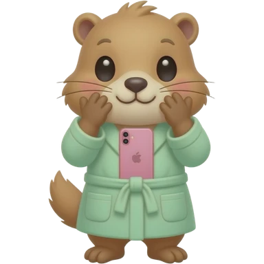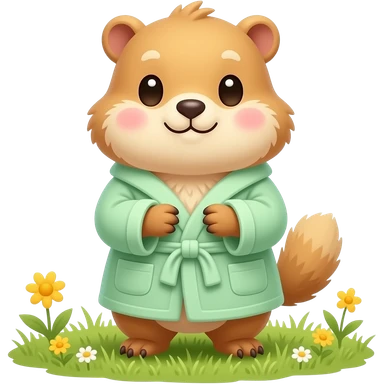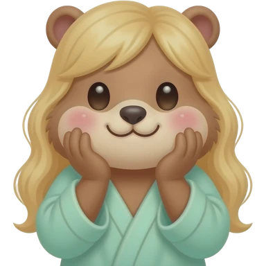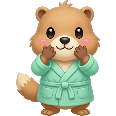 Cute blond Marmot with hands around big cheeks with blush and wearinf light green bath robe emoji