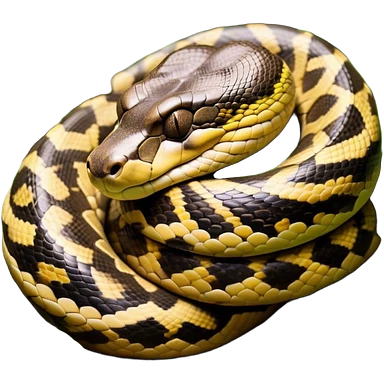 Meme-Worthy cute Sleeping Python Portrait Emoji, Head and coiled body resting peacefully with a contented smile, showcasing intricately patterned scales and eyes gently closed in serene slumber, Simplified yet comically adorable features, highly detailed, glowing with a soft, drowsy glow, high shine, relaxed and utterly lovable, stylized with an air of playful laziness, bright and heartwarming, soft glowing outline, capturing the essence of a sleeping serpent that feels destined to become the next viral icon of adorable rest! emoji