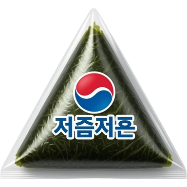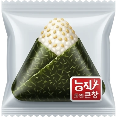 triangle kimbap in plastic packaging, glossy transparent wrapper, seaweed texture visible, Korean convenience store style, clean product shot emoji
