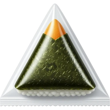 realistic triangle kimbap wrapped in seaweed, detailed nori texture, matte surface, simple isolated object, clean white background, minimal composition emoji