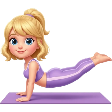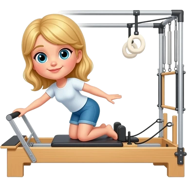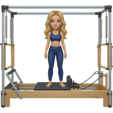 Cute long blonde hair blue eye gym girl wearing navy gym wear on Pilates reformer emoji
