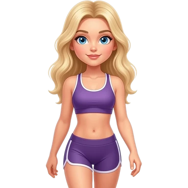 Cute long blonde hair blue eye gym girl in Berry gym wear walking on the beach emoji
