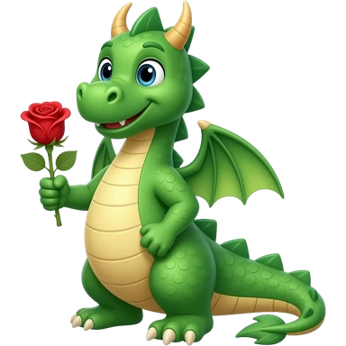 " Cute Discord emoji of a friendly green dragon holding a red rose. Simple cartoon style, bright colors, clean outlines, easy to see at small size." emoji