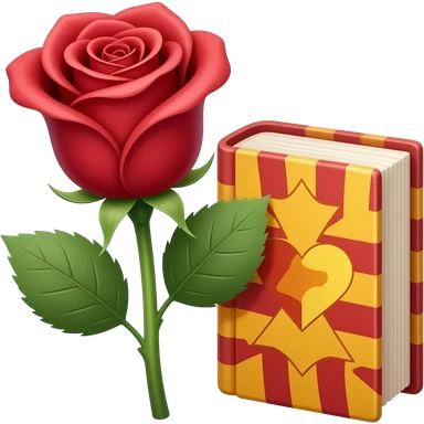 "Cute Discord emoji of a red rose and a red book for Sant Jordi. Simple, colorful, cartoon style, clean outlines, easy to see at small size. Warm tones, optional tiny heart or sparkle. emoji