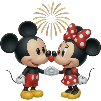 Cute kawii Mickey and Minnie Mouse kissing under fireworks emoji