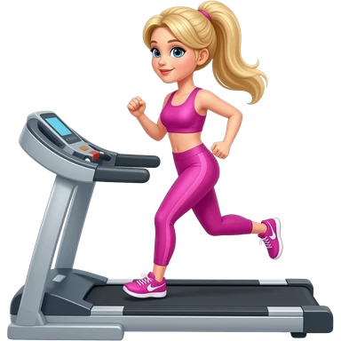 Cute long blonde hair blue eye gym girl in Berry gym wear running on treadmill emoji