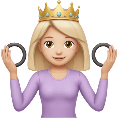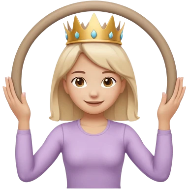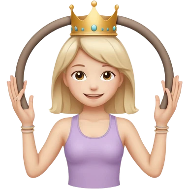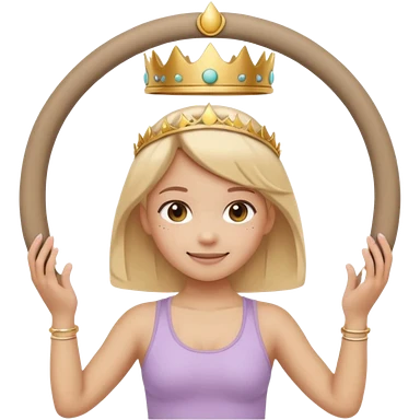 Cute emoji sticker of a girl holding a Pilates ring (magic circle) with both hands, squeezing it. She is smiling, wearing a tiny crown and beige activewear. Pastel accents, kawaii style, clean white outline, transparent background. emoji