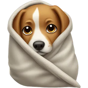 Cute white dog sleeping in a burgundy blanket emoji | AI Emoji Generator