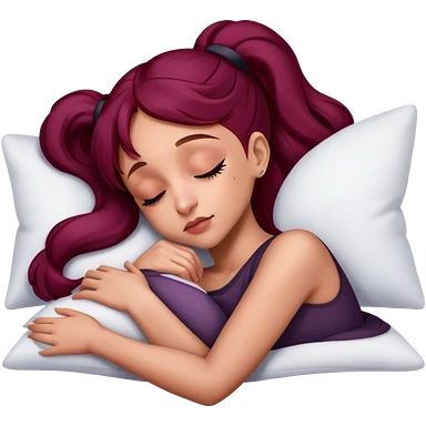 Beautiful burgundy haired girl sleeping in pink blankets emoji