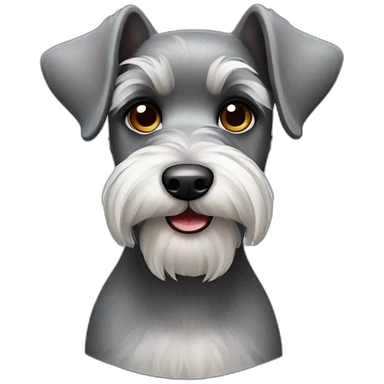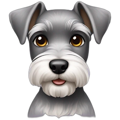 Cinematic Cute Miniature Schnauzer Portrait Emoji, Head cheerfully cocked with expressive, twinkling eyes and a neatly trimmed, adorable salt-and-pepper fur, simplified yet endearingly detailed, glowing with a bright, friendly radiance, high shine, exuding smart and spunky charm, styled with a delicate, whimsical outline, capturing the essence of a cute Miniature Schnauzer that appears ready to scamper off the screen with delightful energy! emoji