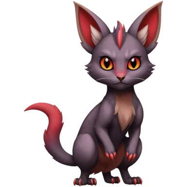 Shiny Dark epic cute cool demonic batty vampiric beautiful edgy pretty aesthetic Noibat-Litten-Fakémon-Pokémon-Digimon-creature with bat-ears-wings and a pointy imp-tail and fangs emoji