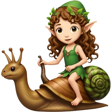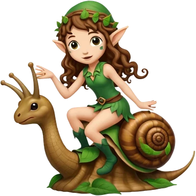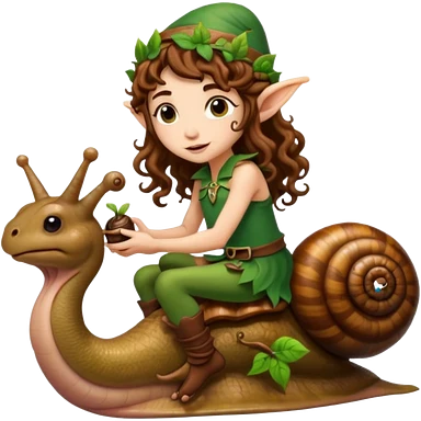 tiny forest elf long curly brown hair tattoos riding snail emoji