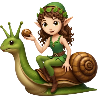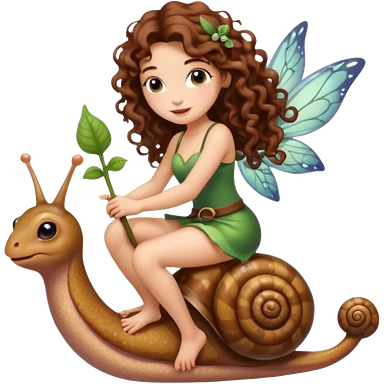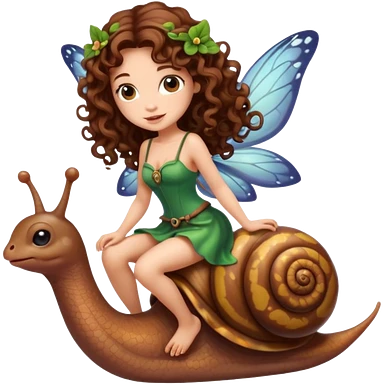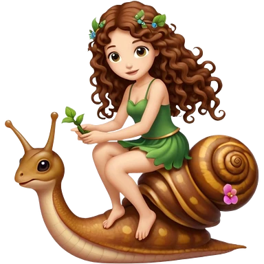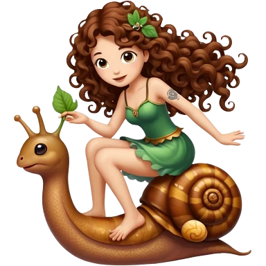cute fairy woman long curly brown hair tattoos riding tiny snail emoji