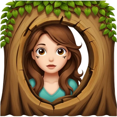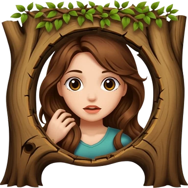 cute woman long wavy brown hair tattoos peeking from tree hole emoji | AI Emoji Generator
