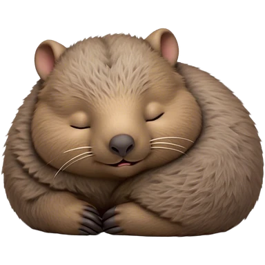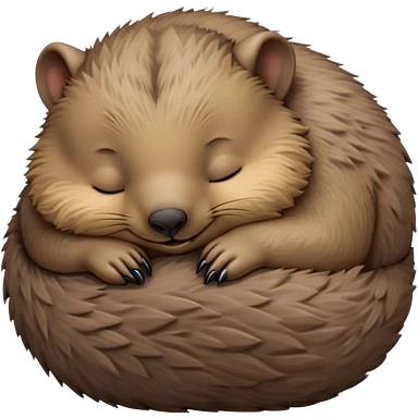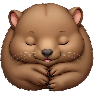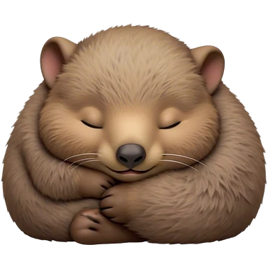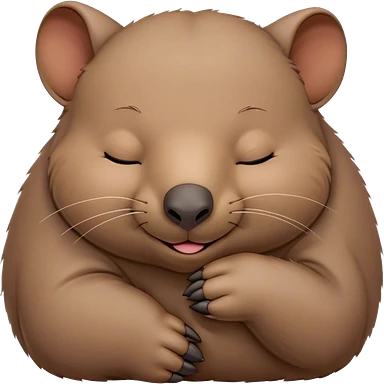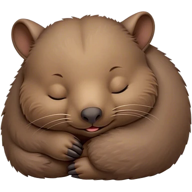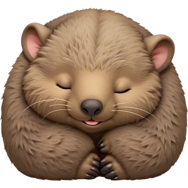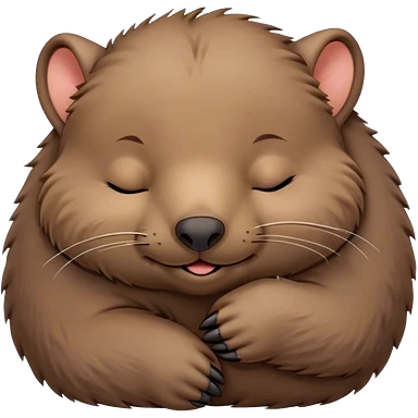 Meme-Worthy Cute Sleeping Wombat Portrait Emoji, Head resting peacefully with a contented smile, showcasing a robust, sturdy build and a luxuriously soft shaggy brown fur, eyes shut in a serene, restful nap, Simplified yet hilariously adorable features, highly detailed, glowing with a soft, drowsy light, high shine, relaxed and utterly lovable, stylized with an air of playful laziness, bright and heartwarming, soft glowing outline, capturing the essence of a comically sleepy wombat, so meme‐worthy it feels like it could instantly become the next viral sensation of adorable slumber! emoji