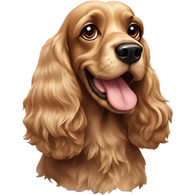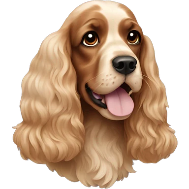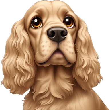 Cute young cocker poodle mix in beige and curly fur happy face fur more apricot and more like cocker spaniel looking emoji | AI Emoji Generator