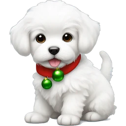Cutest fluffy white puppy wearing Christmas outfit emoji