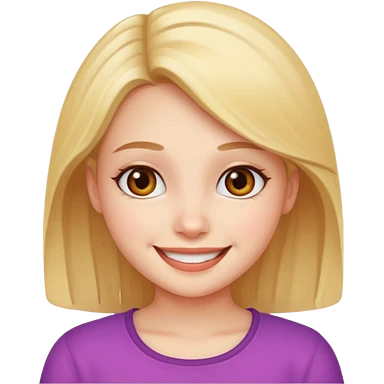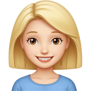 Cutest little girl with curly blonde hair, dimple in right cheek, blue eyes, laughing emoji