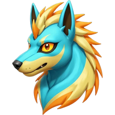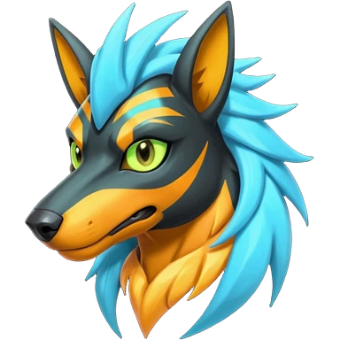 Cyan manectric-Electrike-Houndoom-fusion with neon-green stripes and orange eyes emoji | AI Emoji Generator