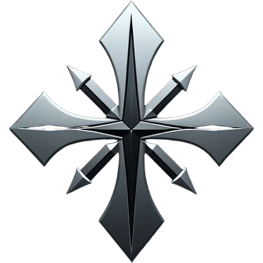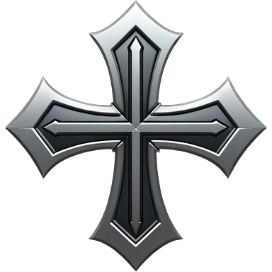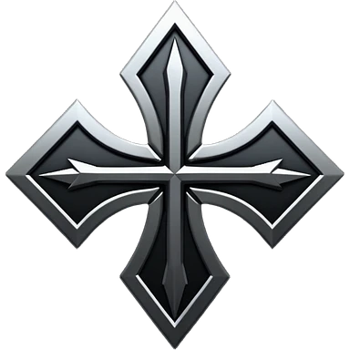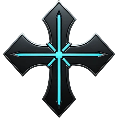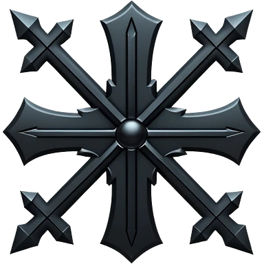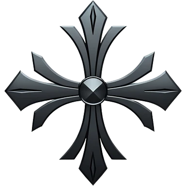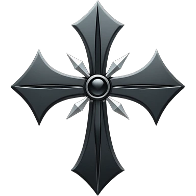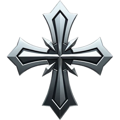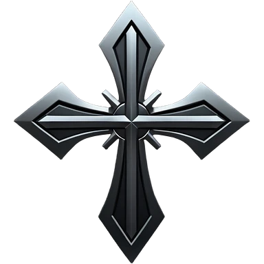Emoji, dark futuristic cross, symmetrical geometric shape, black metal, gothic cyber aesthetic, minimal flat design, sharp edges, centered, transparent background do not use any other colors but metal and black emoji