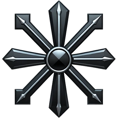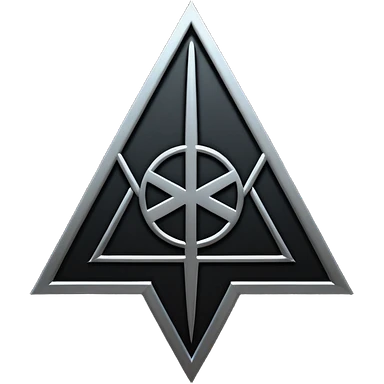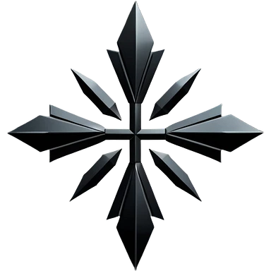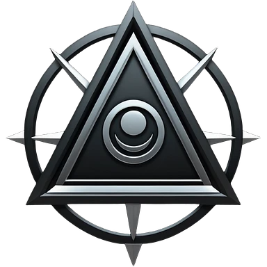 Emoji, dark futuristic occult sigil, symmetrical geometric shape, black metal, gothic cyber aesthetic, minimal flat design, sharp edges, centered, transparent background emoji
