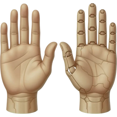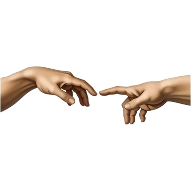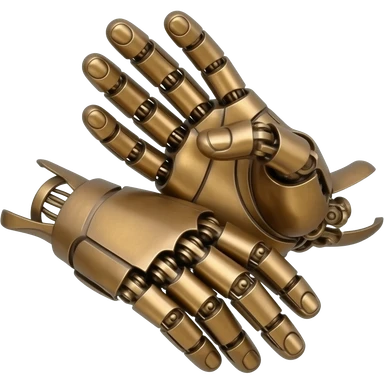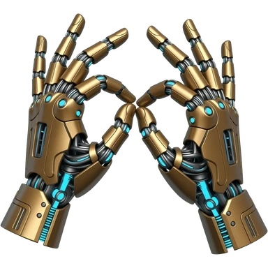 cyberpunk - the touch of the fingers of two bronze palms as in Michelangelo's painting in the Sistine Chapel, but mechanically constructed emoji