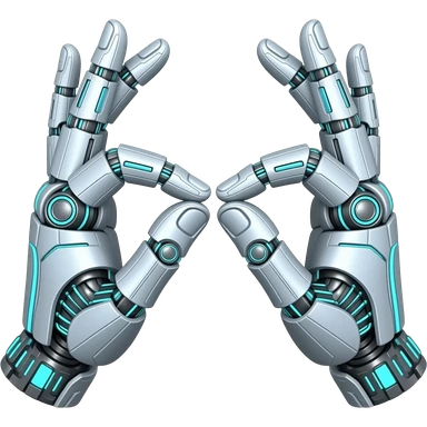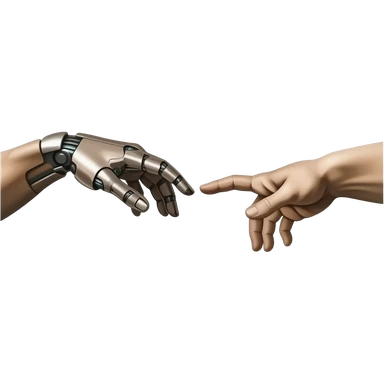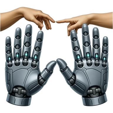 cyberpunk - the touch of the fingers of two palms as in Michelangelo's painting in the Sistine Chapel, but mechanically constructed emoji