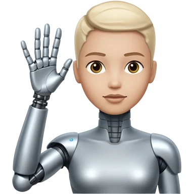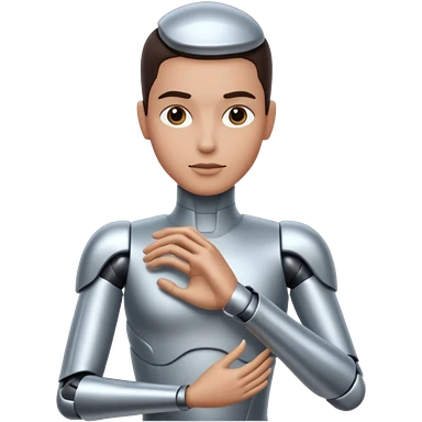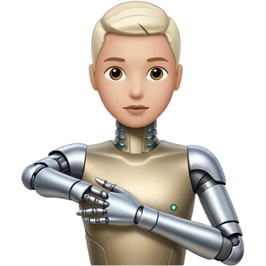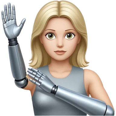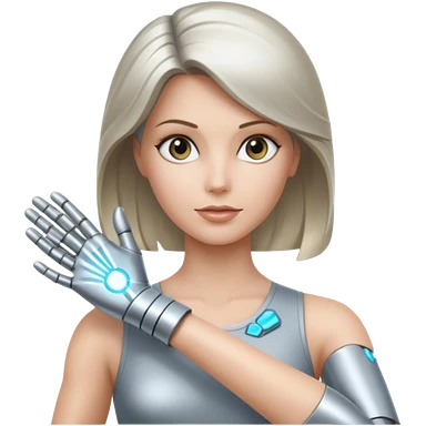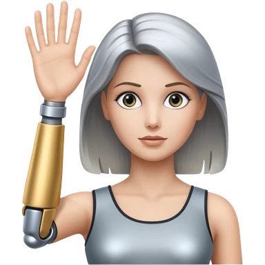 3D render of Bionic Arm, futuristic cyborg aesthetic, fusion of organic skin and chrome metal, polished silver metal arm attached to a tan skin shoulder, exposed wiring, Apple emoji style, isolated on white background --v 6.0. emoji