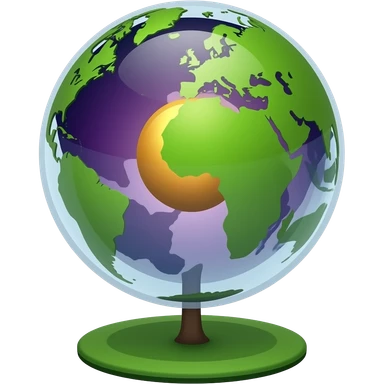Earth: “Stylized earth globe with rich green land and deep purple accents, golden yellow core, grounded element symbol, flat mystical vector” emoji