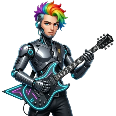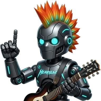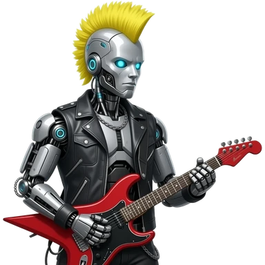 cyberpunk rockstar, mohawk, mechanical sci-fi electric guitar emoji