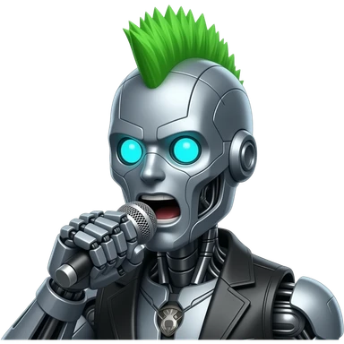 heavy metal rockstar robot, green Mohawk, singing , close up bust size front facing emoji