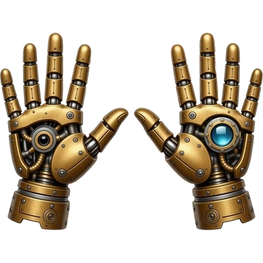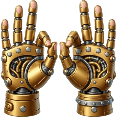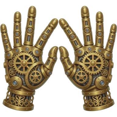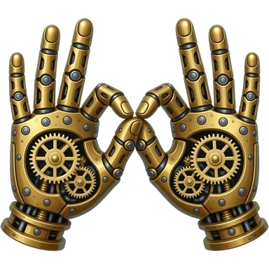 steampunk - the touch of the fingers of two palms as in Michelangelo's painting in the Sistine Chapel, but mechanically constructed emoji