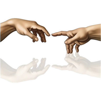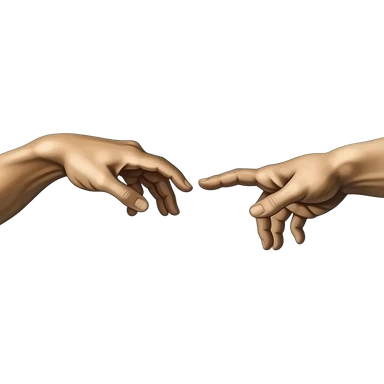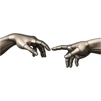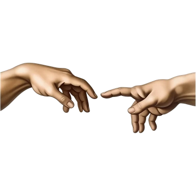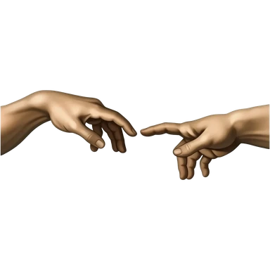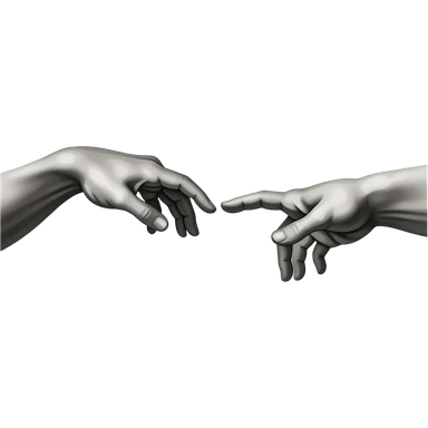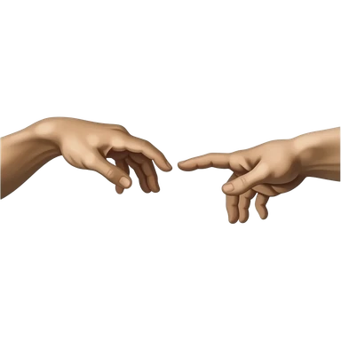 the touch of the fingers of two palms as in Michelangelo's painting in the Sistine Chapel, but mechanically constructed emoji