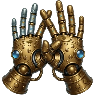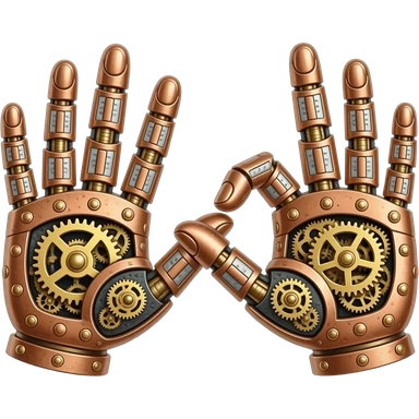 steampunk style - the touch of the fingers of two palms as in Michelangelo's painting in the Sistine Chapel, but mechanically constructed emoji
