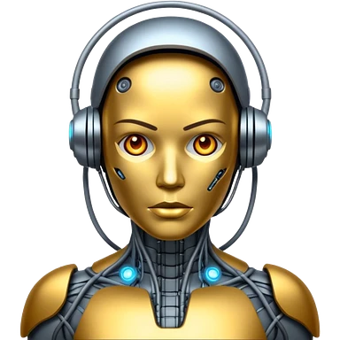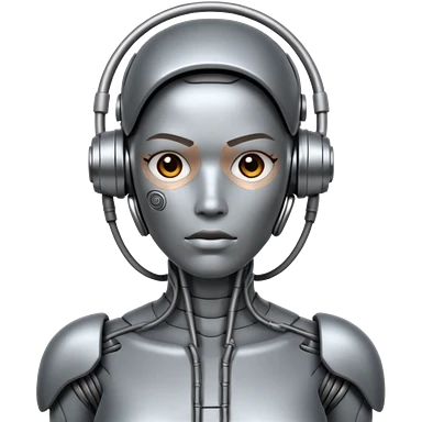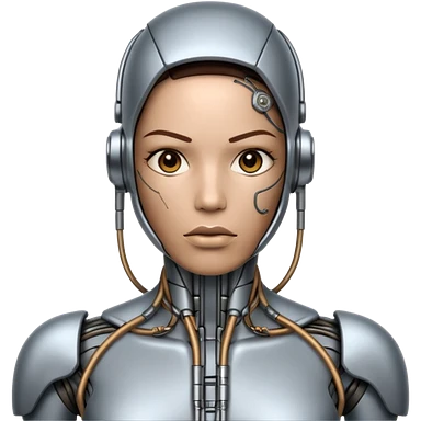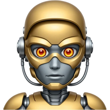 cyborg tiger face with robotic parts and glowing eye for Twitch emote emoji