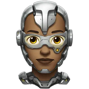 cyborg tiger face with robotic parts and glowing eye for Twitch emote emoji