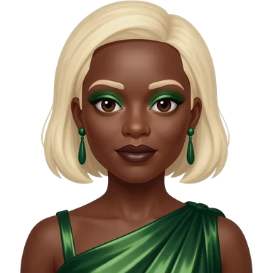 Cynthia Erivo with platinum blonde hair, dark green sequin outfit emoji | AI Emoji Generator