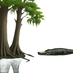 Bayou with bald cypress tree and body of water and alligators emoji