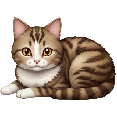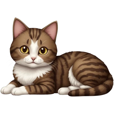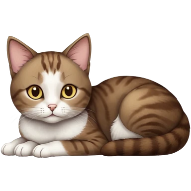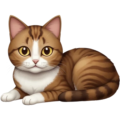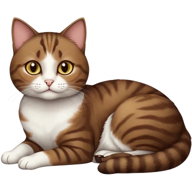 full body tiny short hair dark brown and white cat with hazel eyes lying down emoji