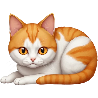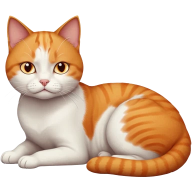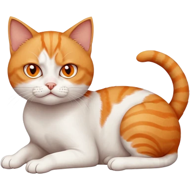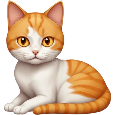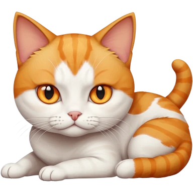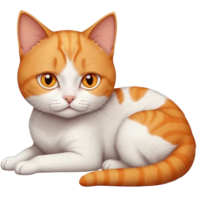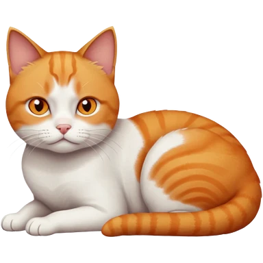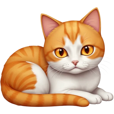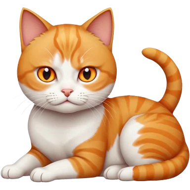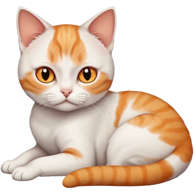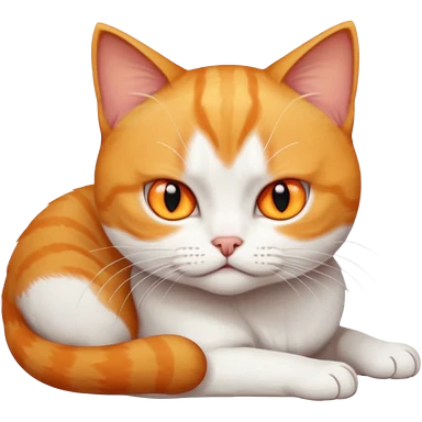 full body angry tiny short hair ginger and white cat with orange eyes lying down emoji