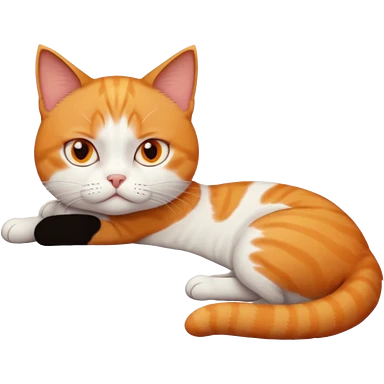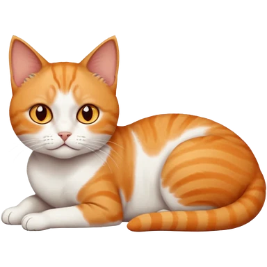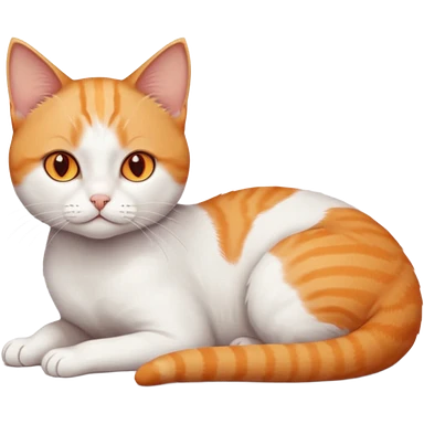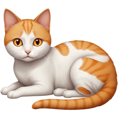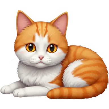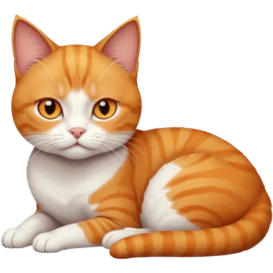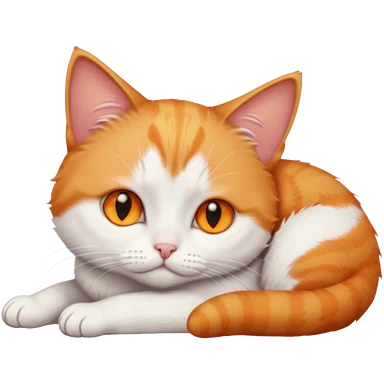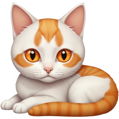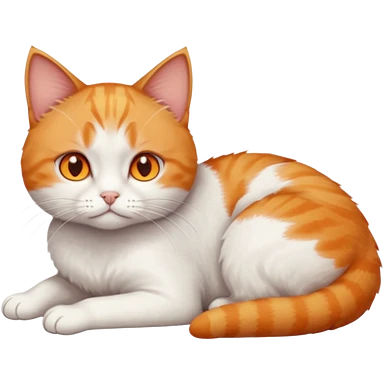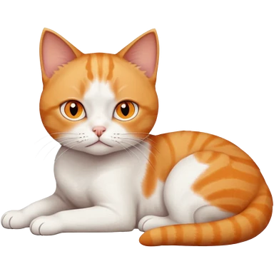 full body sad tiny short hair ginger and white cat with orange eyes lying down emoji