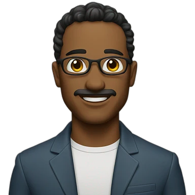 An elderly man with neatly combed white hair swept back, giving a tidy and classic look, and wears black rectangular glasses. His face is oval-shaped with a small white mustache above his lips.d. emoji