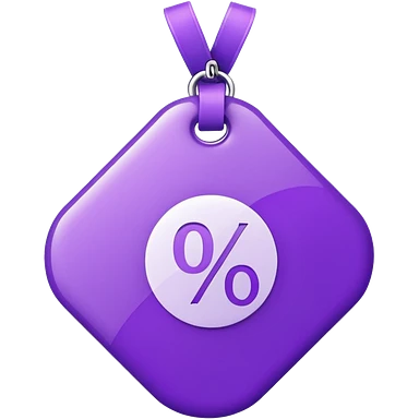 Discount tag with percent symbol in violet colors. emoji